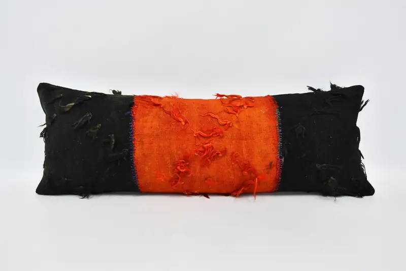 Handgefertigtes gestreiftes Hanfkissen, 16x42 schwarzes Kissen