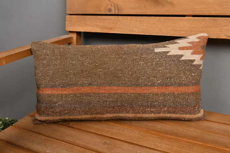 Gesticktes braun-beige gestreiftes Kissen, handgemachtes Vintage-Wurfkissen
