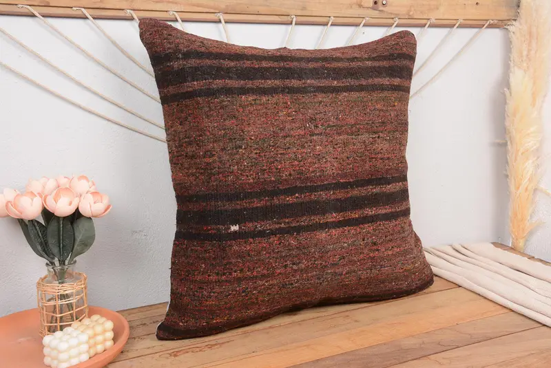 Rot-braun gestreiftes Kissen, handgefertigtes besticktes Leinenkissen