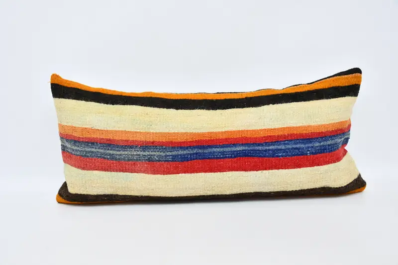 Handgefertigtes Kissen aus Hanf und Wolle, gestreiftes rechteckiges Kissen