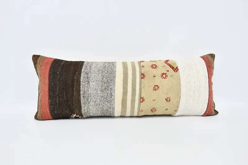 Gesticktes braun-weiß gestreiftes Kissen, handgefertigtes rechteckiges Wurfkissen