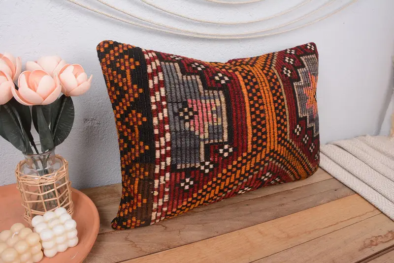 Rotes Southwestern besticktes Kissen, 16x24 handgemachtes Wurfkissen