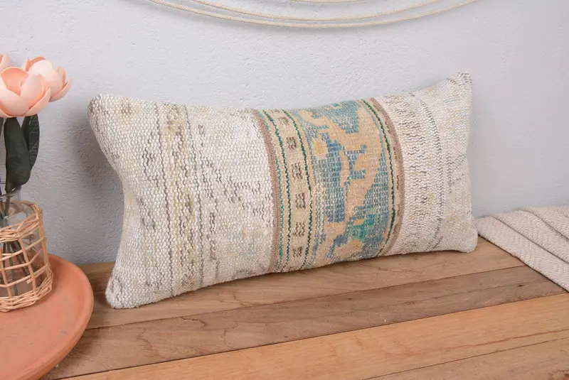 Beige & Bronze besticktes Patchwork-Wurfkissen, handgefertigtes Leinenkissen