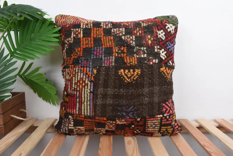 Orange-braunes Patchwork-Wurfkissen, 20x20 besticktes Kissen