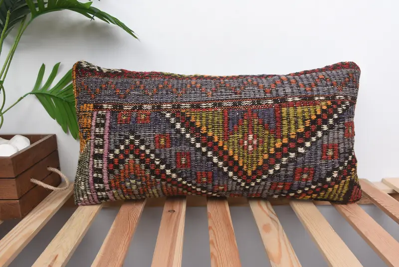 Blaues und grünes Southwestern-Wurfkissen, 12x24 handgefertigtes Leinenkissen