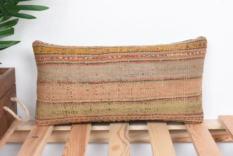 Besticktes beige-grau gestreiftes Kissen, vielseitiges 8x16 Wurfkissen