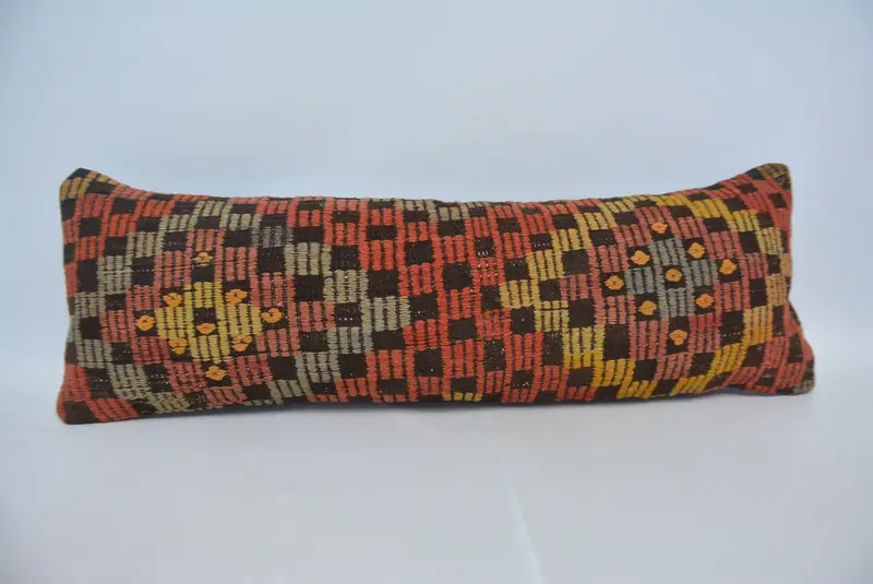 Rot & Gelb besticktes Wurfkissen, handgemachtes Vintage Kissen