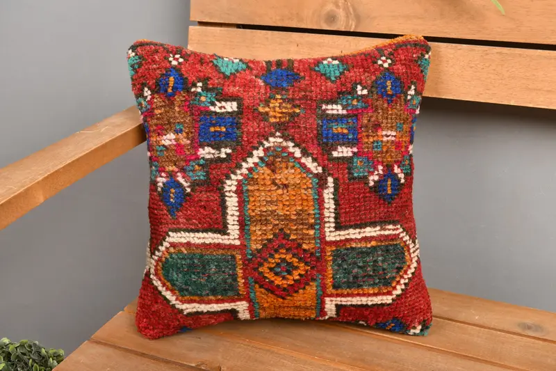 Rotes Southwestern besticktes Kissen, 12x12 handgemachtes Wurfkissen