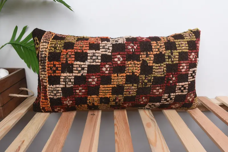 Handgefertigtes besticktes Kissen im Südwesten, Vintage-Wurfkissen in Rot und Orange