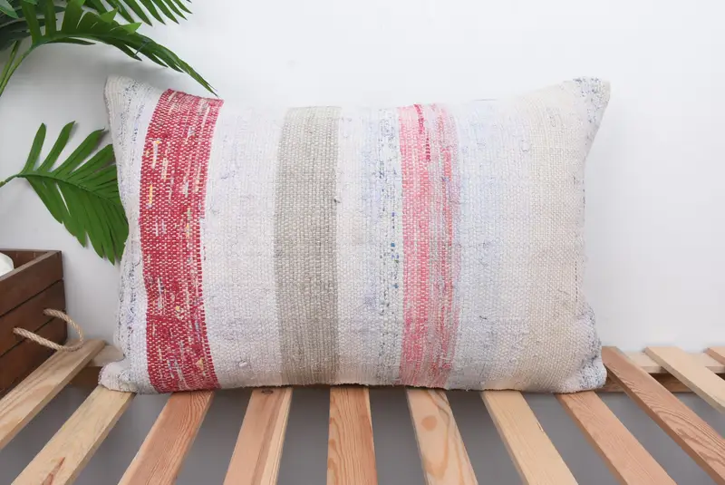 Rot & Bronze gestreiftes Kissen, 16x24 handgemachtes Leinenkissen