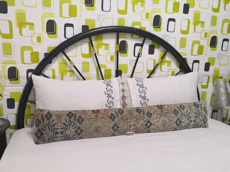 Handgefertigtes Wollkissen, 8x48 Zoll besticktes, florales Rechteckkissen
