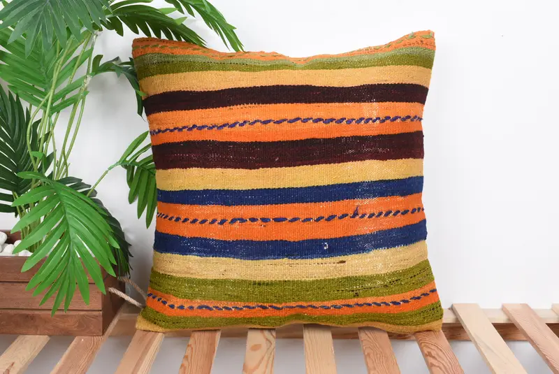 Orange & Bronze gestreiftes Wurfkissen, 20x20 besticktes Kissen