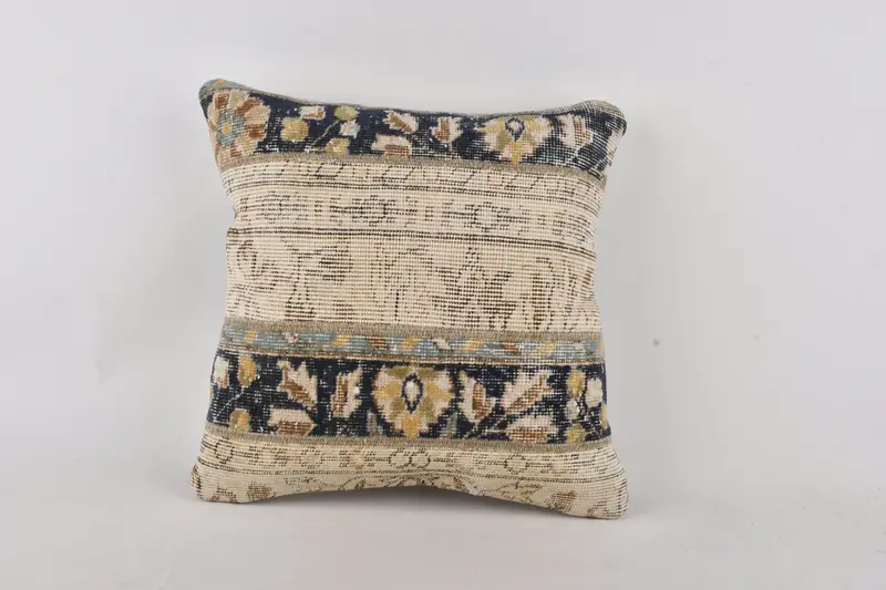 Blaues und beiges Patchwork-Wurfkissen, besticktes Vintage-Kissen