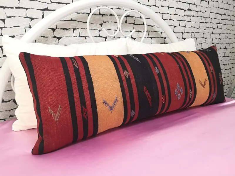 Handgefertigtes gestreiftes Wollkissen, 16x48 Zoll rechteckiges Dekokissen