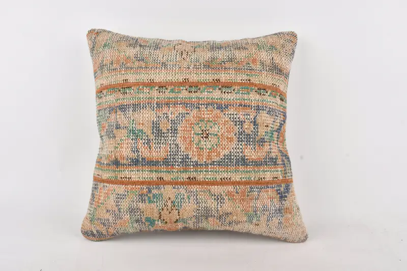 Blaues und orangefarbenes Patchwork-Wurfkissen, besticktes Vintage-Kissen