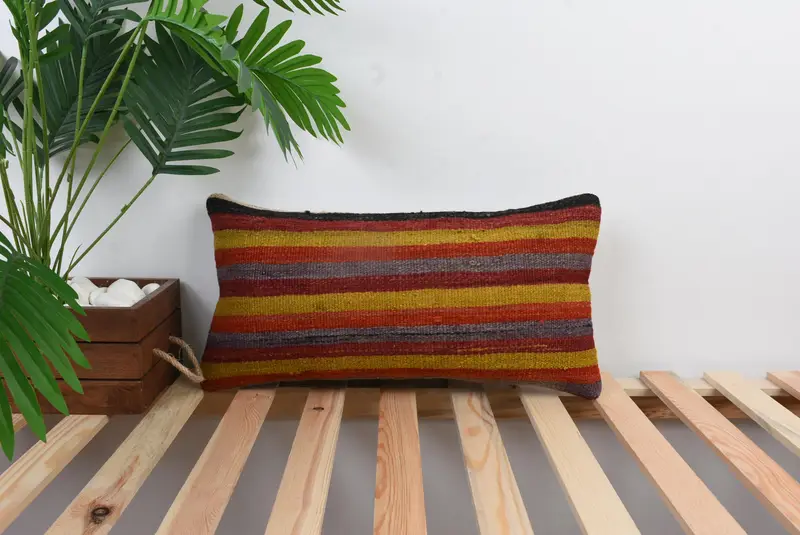 Rot-grün gestreiftes Kissen, handgefertigtes besticktes Kissen