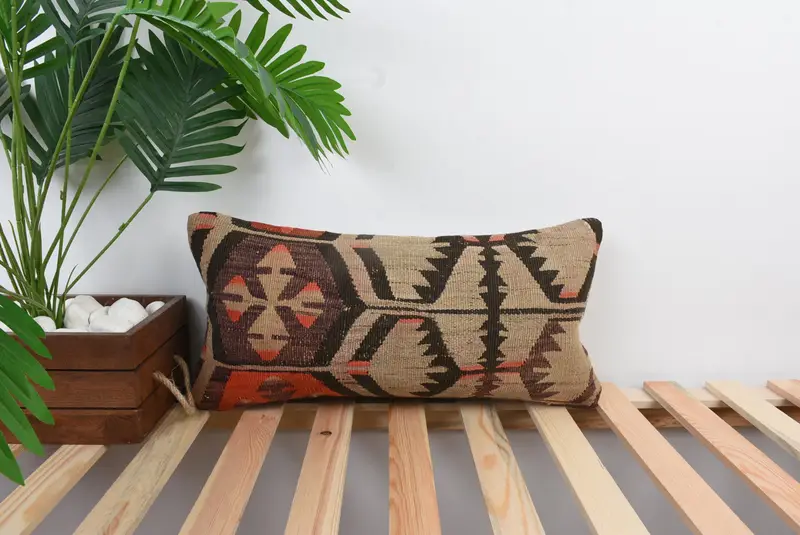 Geometrisches Leinen-Wurfkissen mit Reißverschluss, besticktes Vintage-Kissen