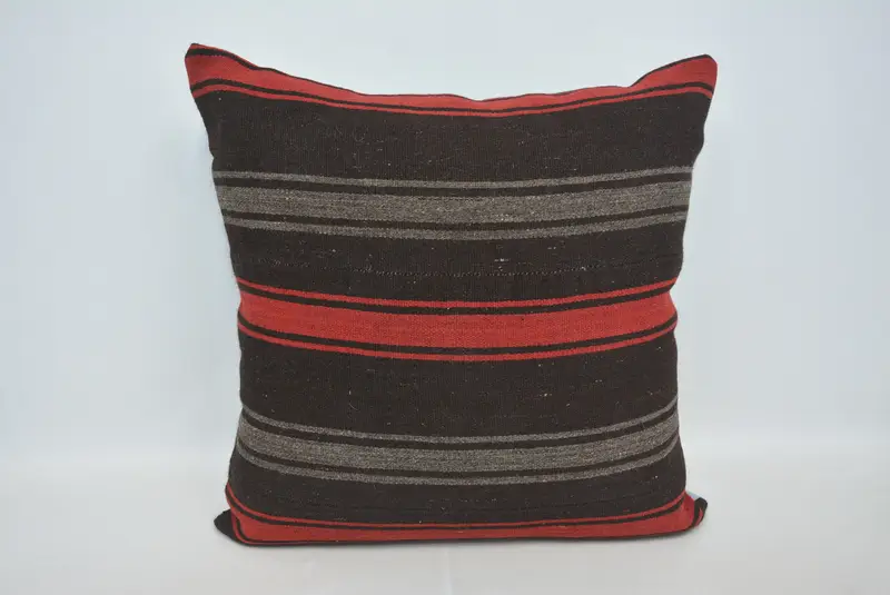 Handgefertigtes 32x32 braunes und rotes Wurfkissen, besticktes Kissen