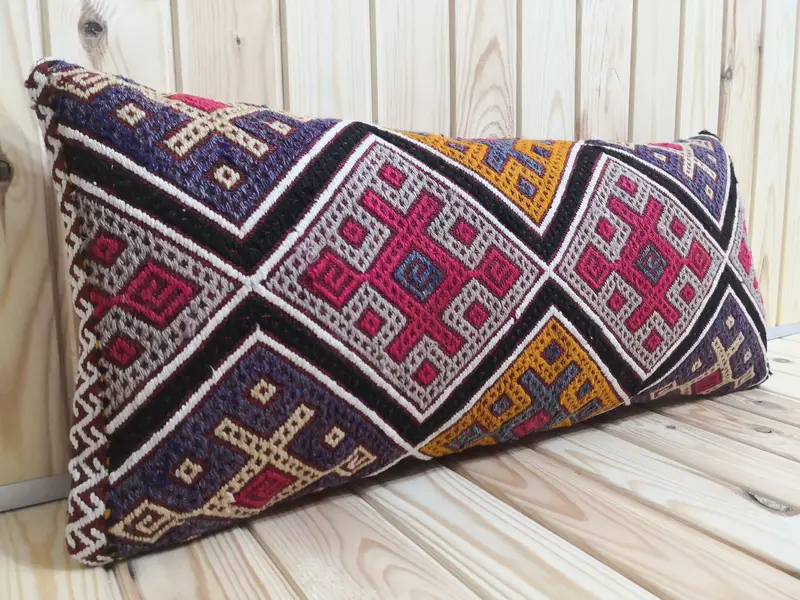 Handgefertigtes besticktes Wollkissen, 12x28 Zoll geometrisches Wurfkissen