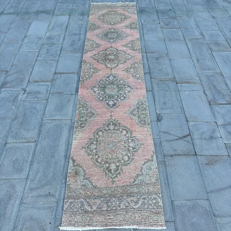 2,6 x 13 Fuß großer rosa Teppich mit grünen Punkten, moderner Chic