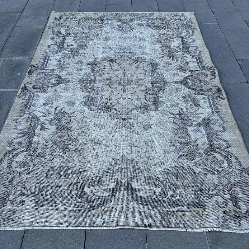 Eleganter beiger Teppich, 5,2 x 7,7 Fuß, florales und geometrisches Design
