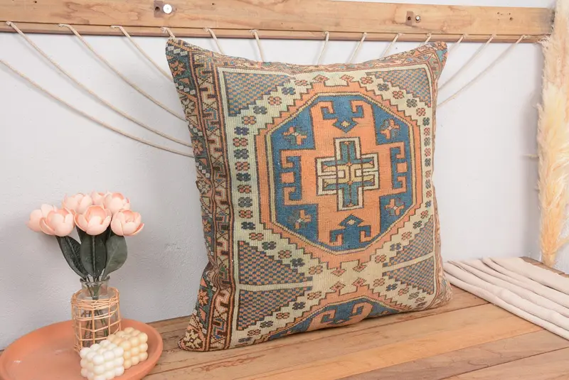 Besticktes Kissen in Orange und Bronze, 28 x 28 Vintage-Wurfkissen