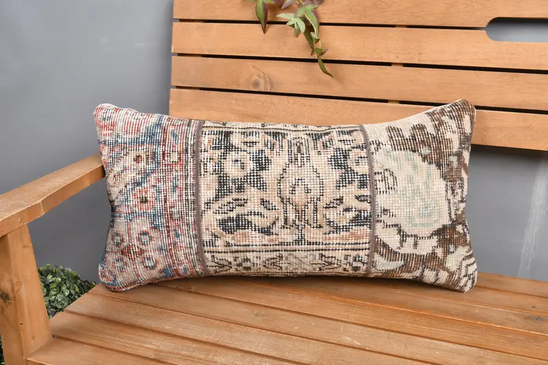 Beige & braunes Patchwork-Wurfkissen, 12x24 handgemachtes Leinenkissen