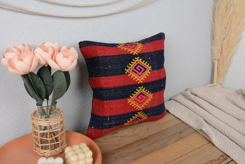 Rot-rosa gestreiftes Wurfkissen, 14x14 besticktes Kissen