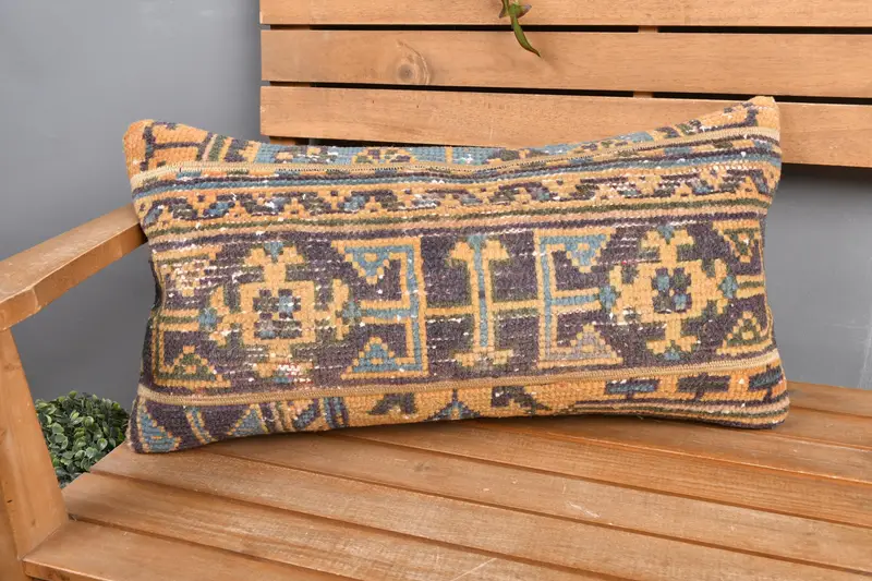 Orange & Bronze Blumen besticktes Wurfkissen, Vintage handgemachtes Kissen