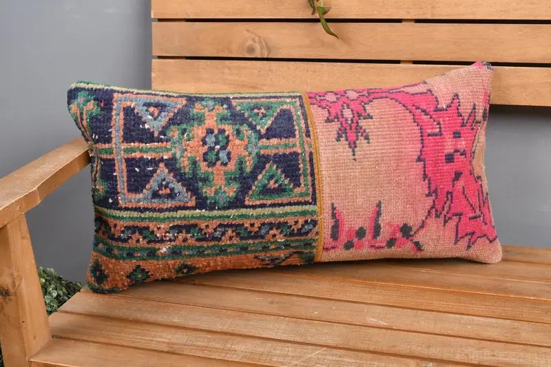 Rotes Leinen-Wurfkissen mit bronzefarbenem Patchwork, Vintage-Rechteckkissen
