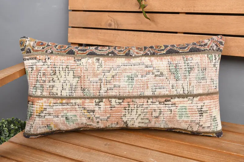 Beige & rotes Patchwork-Wurfkissen, handgefertigtes Leinenkissen