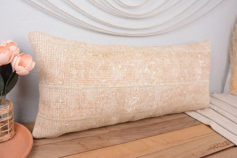 Beige besticktes Patchworkkissen, handgemachtes rechteckiges Wurfkissen