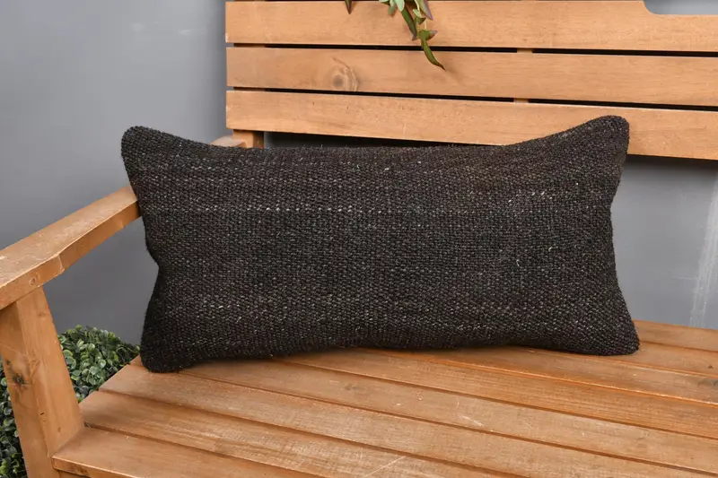 Handgefertigtes braunes Southwestern-Wurfkissen, 12x24 besticktes Leinenkissen