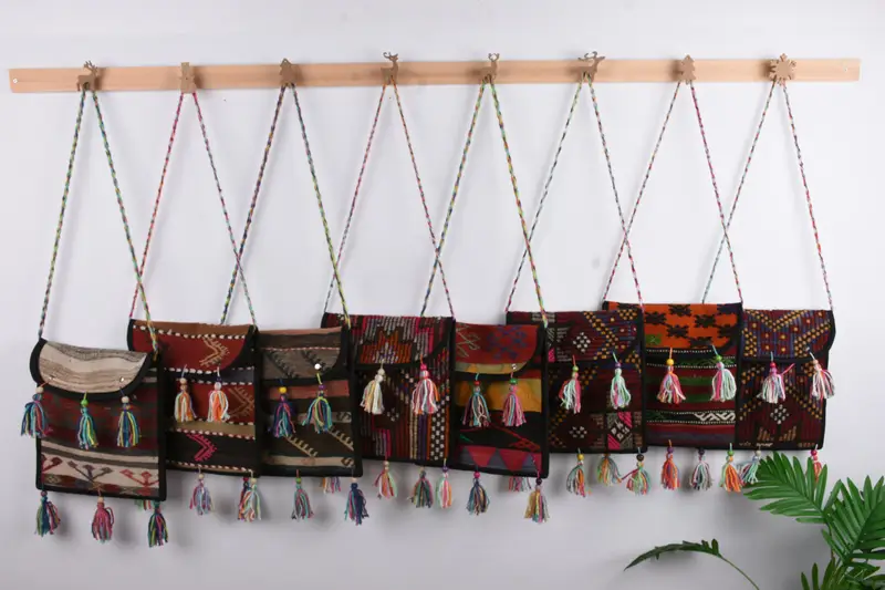Handgefertigtes braun-rot besticktes Kissen, Vintage-Wurfkissen