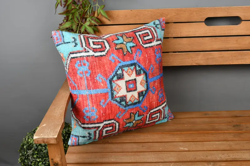Rotes südwestliches besticktes Kissen, Vintage-Rechteck-Wurfkissen