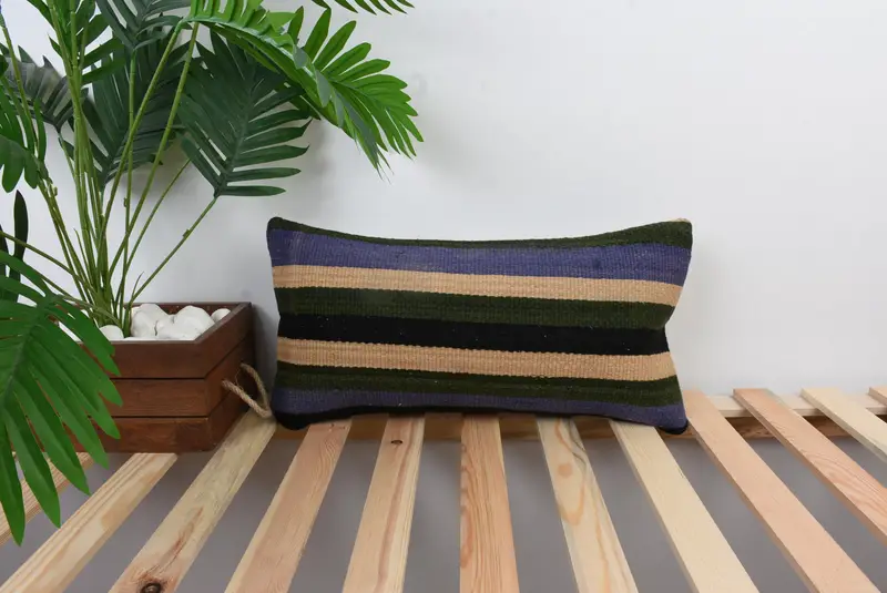 Blau und grün besticktes Wurfkissen, vielseitiges rechteckiges Kissen