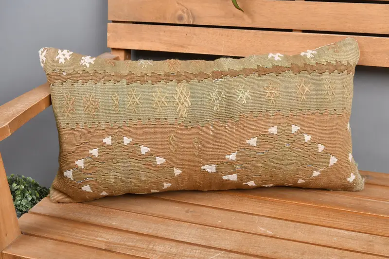 Geometrisches Beige- und Braunes Rechteck-Wurfkissen, Vintage-gesticktes Kissen