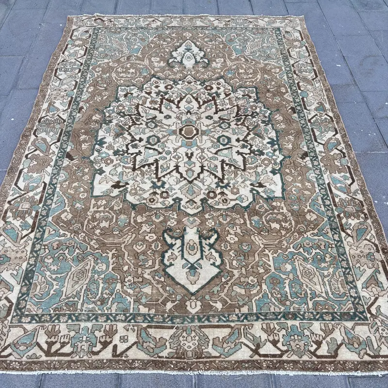Brauner, beigefarbener gepunkteter Teppich, 6,6 x 9,4 Fuß, schickes Dekor