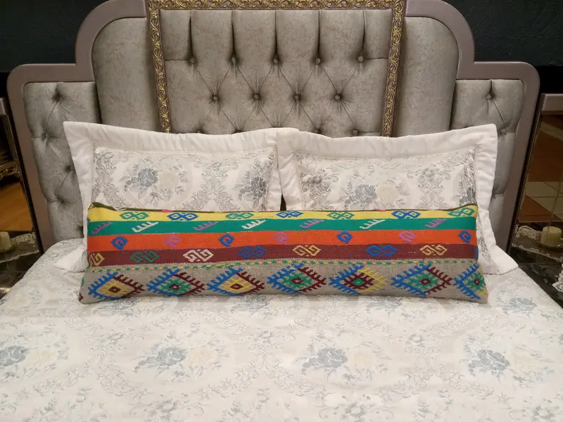 Handgefertigtes gestreiftes Wollkissen, 12x48 Zoll besticktes Kissen