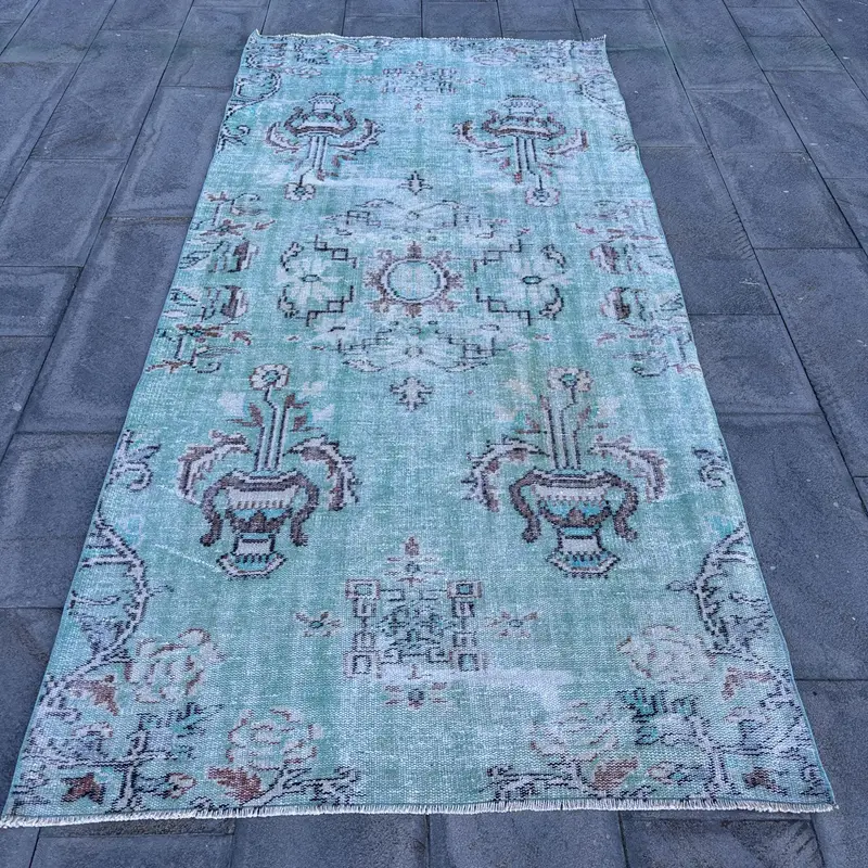 Eleganter beige-grüner Teppich, 4,4 x 9,2 Fuß, geometrisches Blumenmuster