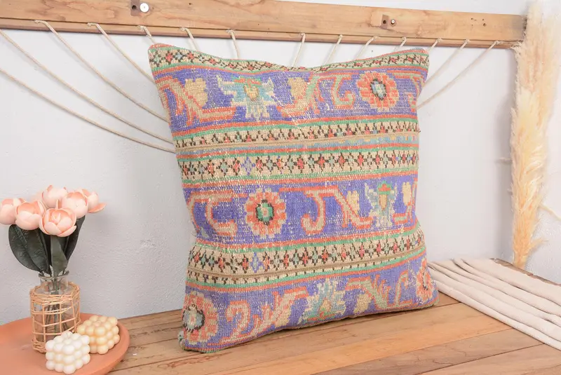 Blaues und grünes Patchwork-Wurfkissen, 28x28 besticktes Kissen