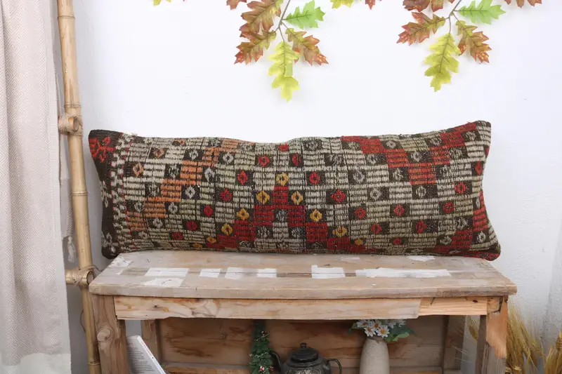Orange & rotes Southwestern Wurfkissen, 12x36 handgemachtes Kissen