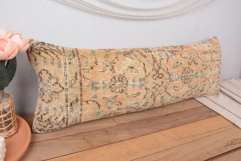 Orange & grünes Blumenkissen, 12x36 handgemachtes Kissen