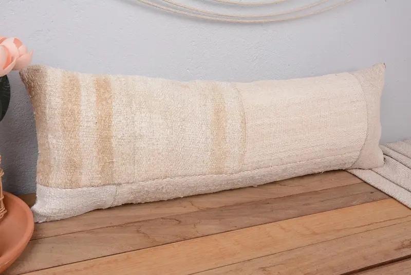 Beige besticktes Patchwork-Wurfkissen, 12x36 handgefertigtes Kissen
