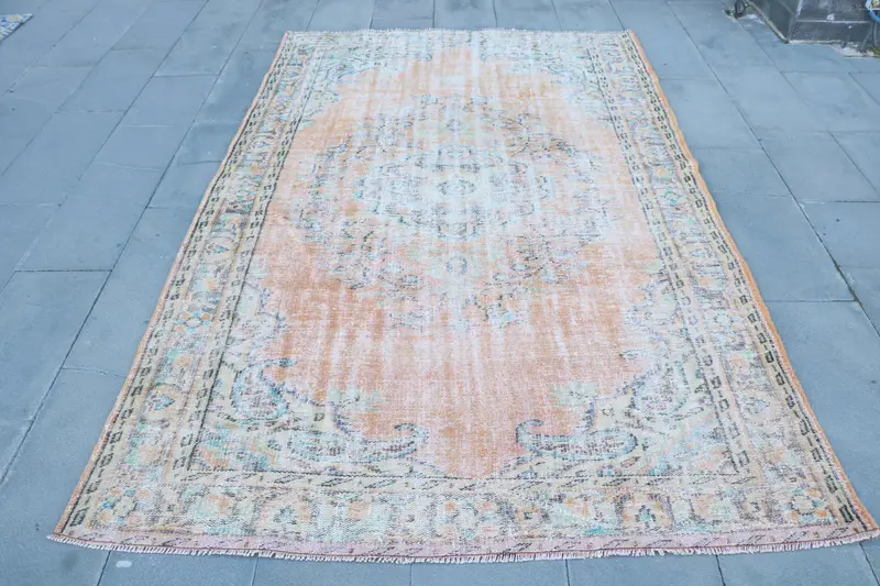 5,4 x 8,5 Fuß großer orangefarbener Teppich, orientalisches Muster mit braunen Akzenten
