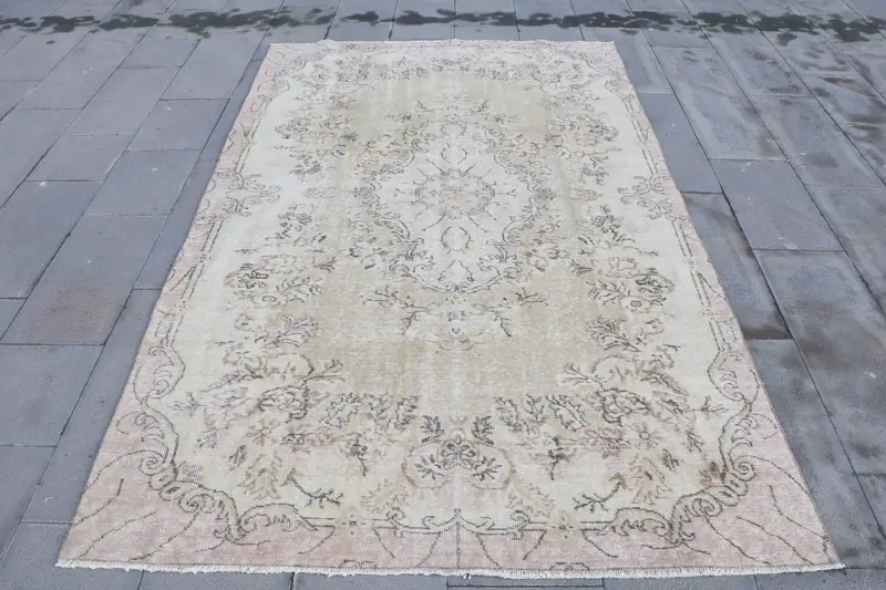 Eleganter beiger Teppich, 5,1 x 8,3 Fuß mit braunen Pflanzenmustern