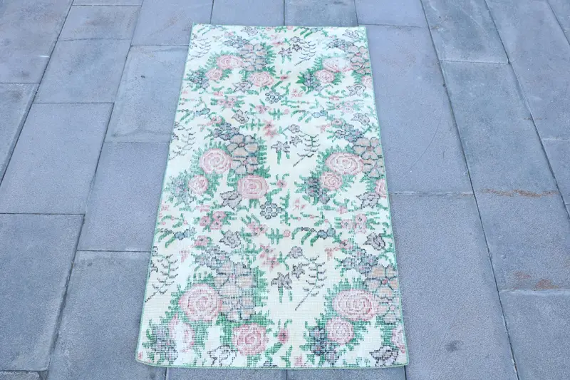 Eleganter beigefarbener Südwestteppich, 2,3 x 4,3 Fuß, grüne Akzente