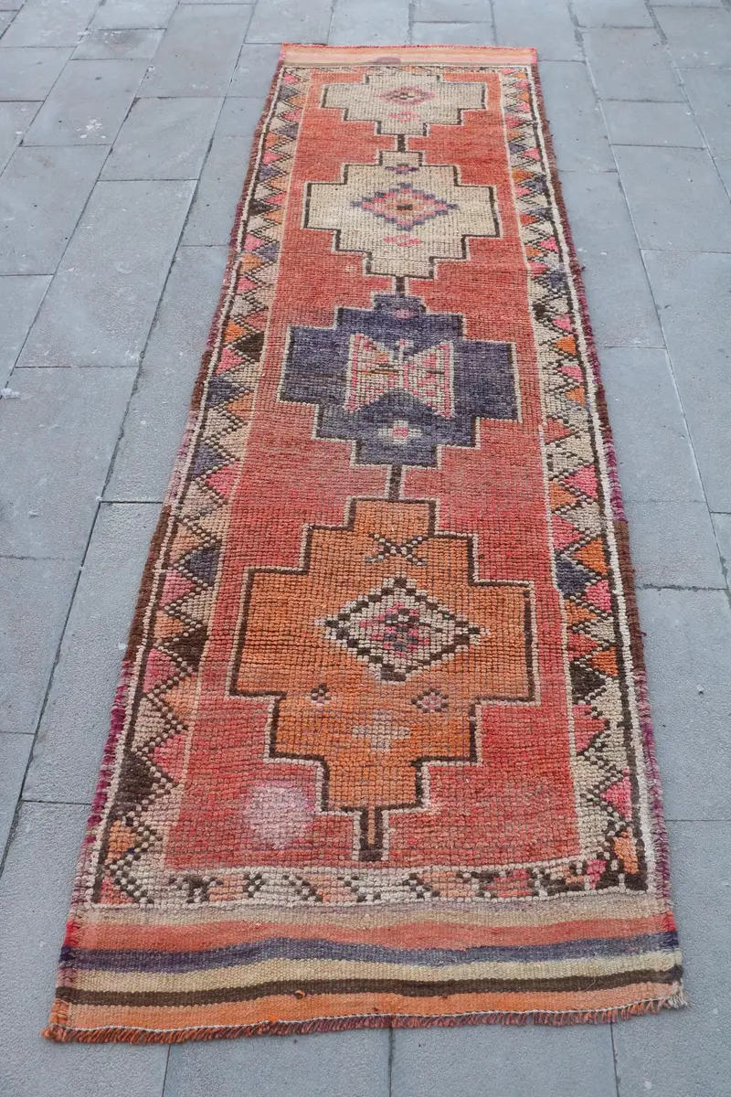 Eleganter Teppich in Beige und Braun, 2,9 x 9,9 Fuß großes Karomuster