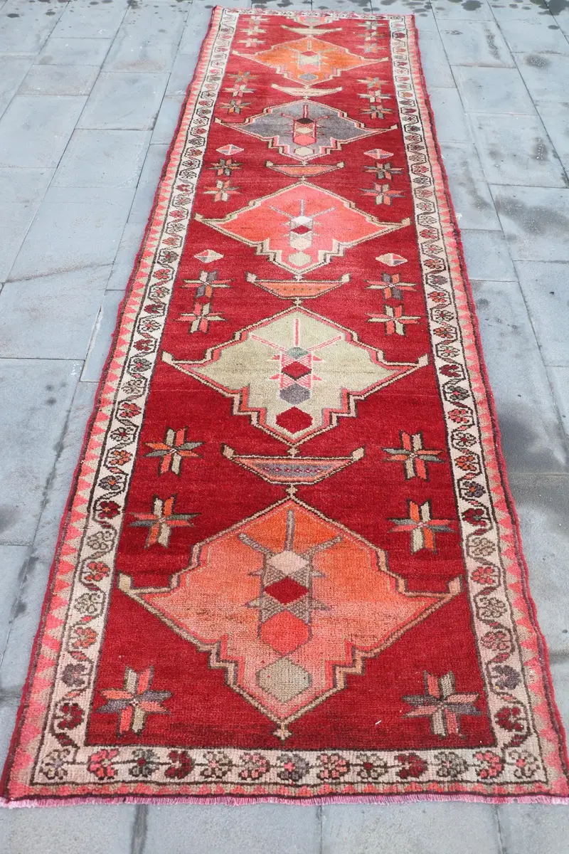 Roter Patchwork-Teppich, 3,1 x 12 Fuß, elegante Heimdekoration
