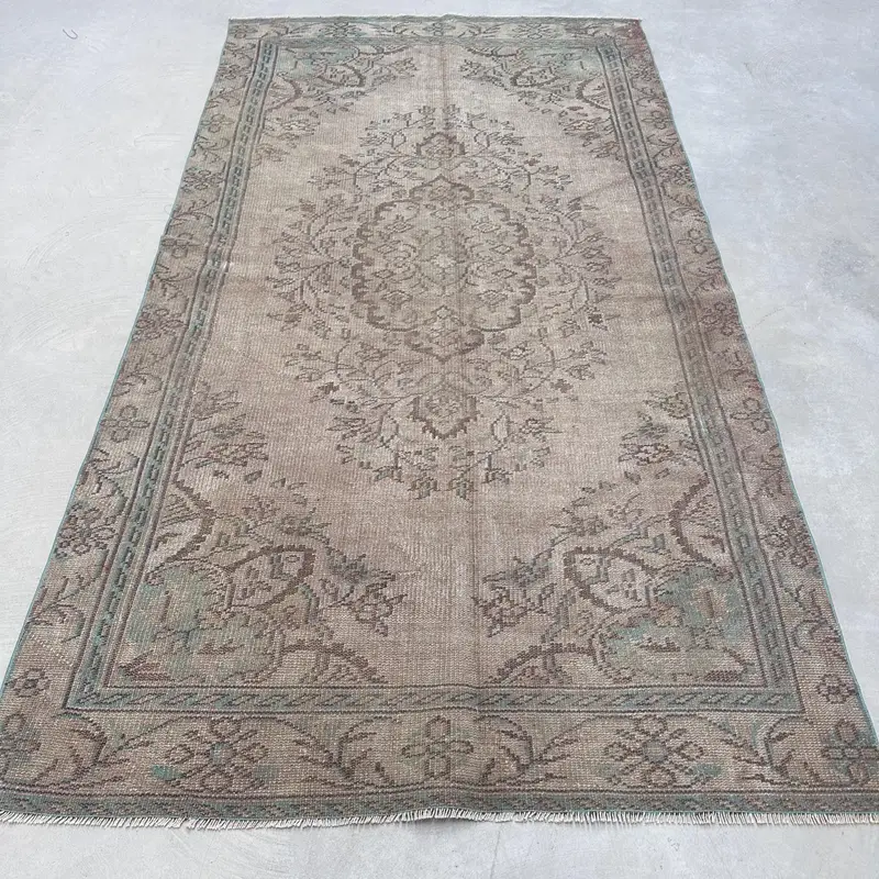 Brauner und grüner Teppich, 5 x 9,1 Fuß, elegantes Randdesign